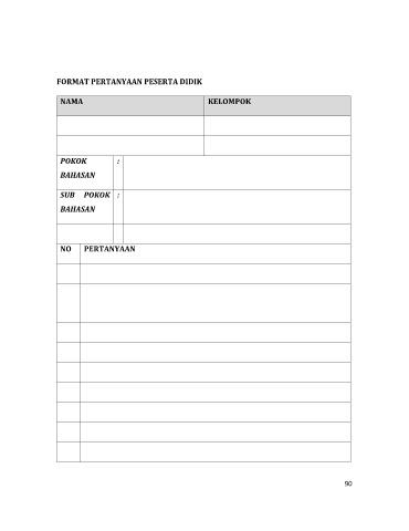 FORMAT PERTANYAAN PESERTA DIDIK NAMA KELOMPOK POKOK : BAHASAN SUB POKOK : BAHASAN NO PERTANYAAN 90