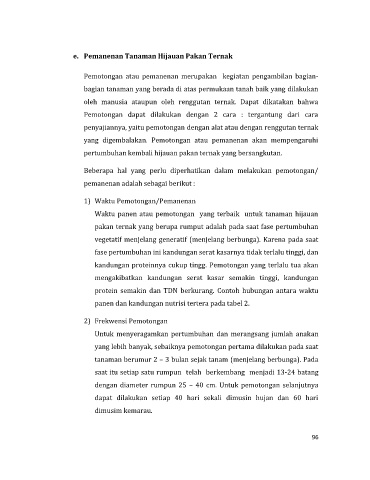 e. Pemanenan Tanaman Hijauan Pakan Ternak