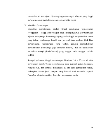 hijauan selanjutnya. Pemotongan yang telalu tinggi menyebabkan tunas