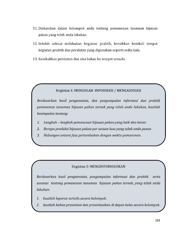 11. Diskusikan dalam kelompok anda tentang pemanenan tanaman hijauan
