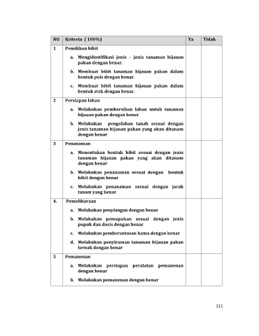 NO Kriteria ( 100%) Ya Tidak
