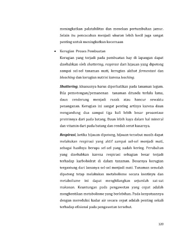 disebabkan oleh shattering, respirasi dari hijauan yang dipotong