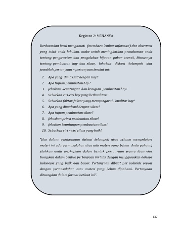 tentang pembuatan hay dan silase, lakukan diskusi kelompok dan