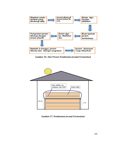 Gambar 36. Alur Proses Pembuatan Jerami Fermentasi Urea, dedak, air, molasses, dan EM4 Jerami Padi 1,5 m 1 m Gambar 37. Pembuatan Jerami Fermentasi 159