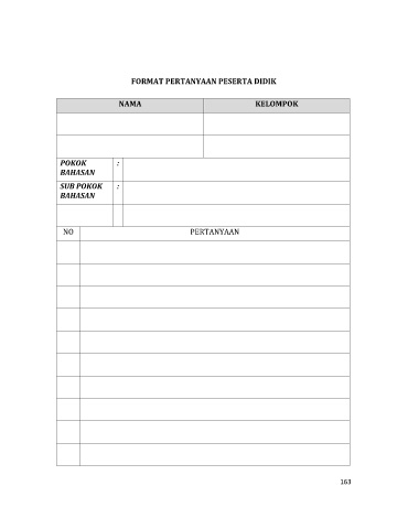 FORMAT PERTANYAAN PESERTA DIDIK NAMA KELOMPOK POKOK : BAHASAN SUB POKOK : BAHASAN NO PERTANYAAN 163