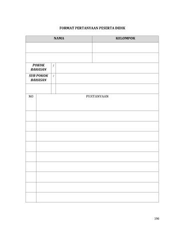FORMAT PERTANYAAN PESERTA DIDIK NAMA KELOMPOK POKOK : BAHASAN SUB POKOK : BAHASAN NO PERTANYAAN 196