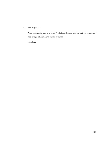 d. Pertanyaan: Aspek menarik apa saja yang Anda temukan dalam materi pengawetan dan pengolahan bahan pakan ternak? Jawaban: 205
