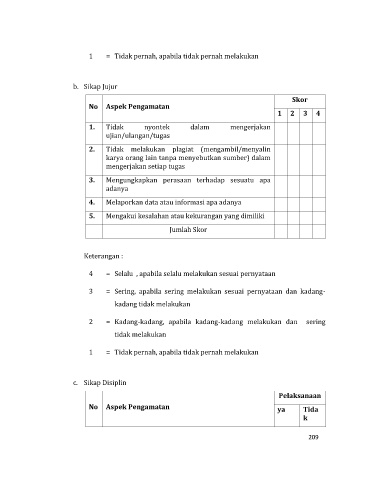 1 = Tidak pernah, apabila tidak pernah melakukan