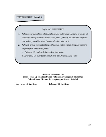 dan pakan yang dilakukan. Gunakan lembar observasi.
