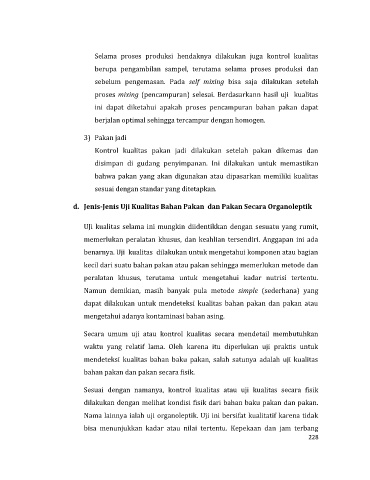 dilakukan dengan melihat kondisi fisik dari bahan baku pakan dan pakan.