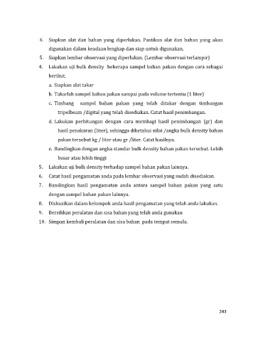 e. Bandingkan dengan angka standar bulk density bahan pakan tersebut. Lebih