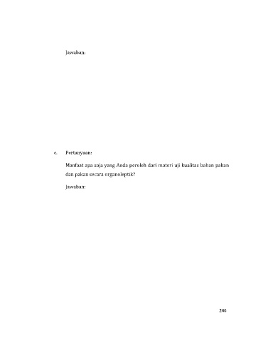 Jawaban: c. Pertanyaan: Manfaat apa saja yang Anda peroleh dari materi uji kualitas bahan pakan dan pakan secara organoleptik? Jawaban: 246