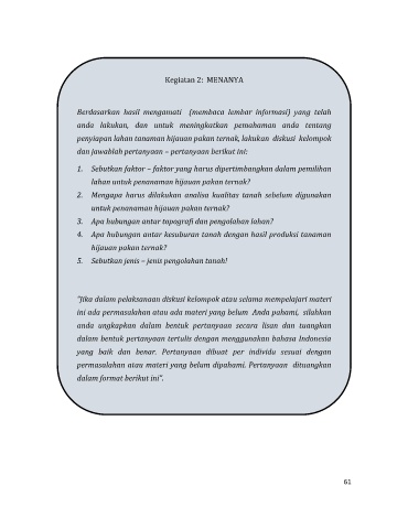 penyiapan lahan tanaman hijauan pakan ternak, lakukan diskusi kelompok