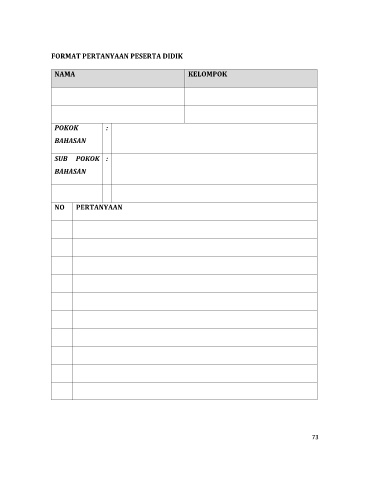 FORMAT PERTANYAAN PESERTA DIDIK NAMA KELOMPOK POKOK : BAHASAN SUB POKOK : BAHASAN NO PERTANYAAN 73