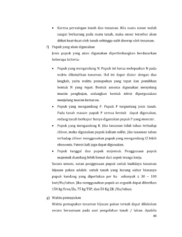 Jenis pupuk yang akan digunakan dipertimbangkan berdasarkan