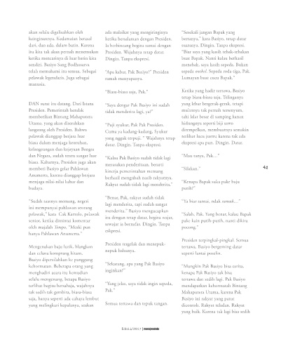 telah memahami itu semua. Sebagai “Apa kabar, Pak Basiyo?” Presiden sepeda onthel. Sepeda roda tiga, Pak.