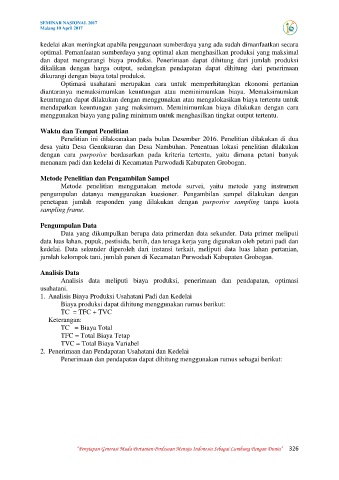 Analisis data meliputi biaya produksi, penerimaan dan pendapatan, optimasi