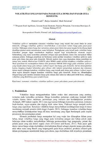 Kata kunci: transmisi, volatilitas, volatilitas spillover, pasar gula dunia, pasar gula domestik