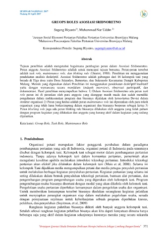 dokumentasi. Hasil penelitian menyimpulkan bahwa: 1) Dalam Asosiasi Sridnoretno ada peran task