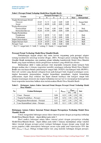 Tabel 3. Hubungan Antara Faktor Internal Petani Dengan Persepsi Petani Terhadap Model