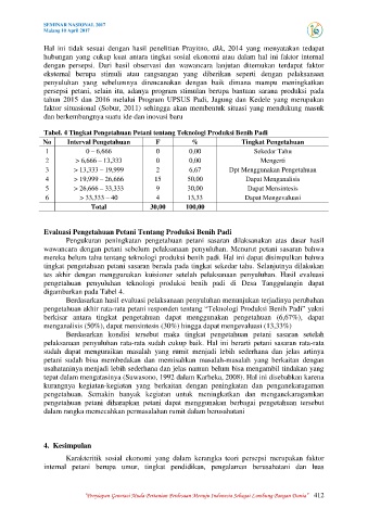 Tabel. 4 Tingkat Pengetahuan Petani tentang Teknologi Produksi Benih Padi