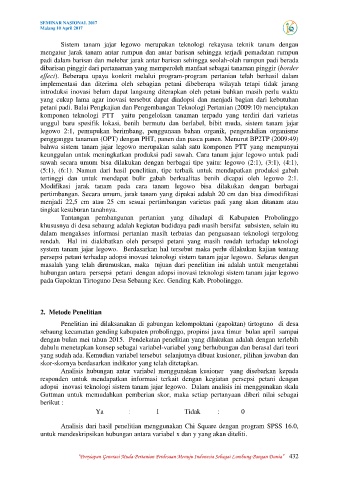 adopsi inovasi teknologi sistem tanam jajar legowo. Dalam analisis ini menggunakan skala