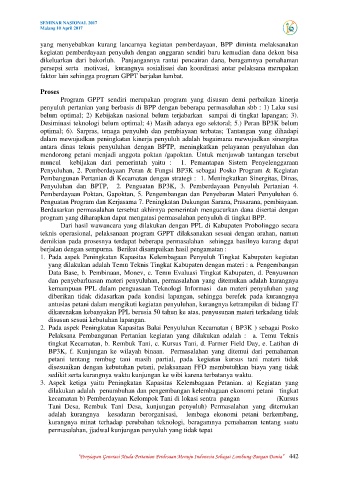 optimal; 6). Sarpras, tenaga penyuluh dan pembiayaan terbatas; Tantangan yang dihadapi