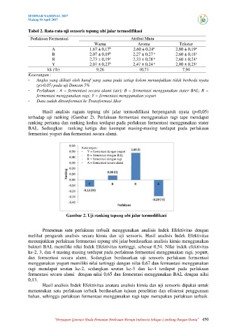 terhadap uji ranking (Gambar 2). Perlakuan fermentasi menggunakan ragi tape mendapat