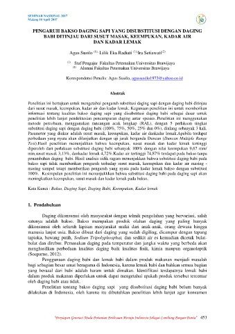 Kata Kunci : Bakso, Daging Sapi, Daging Babi, Keempukan, Kadar lemak