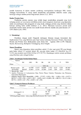 * )Dihitung dengan rumus : (urea yang diberikan/konsumsi BK Total) x 100%.