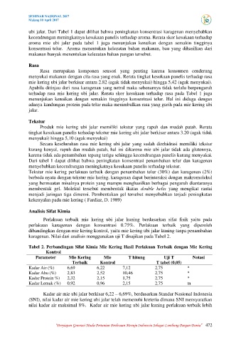 Tabel 2. Perbandingan Sifat Kimia Mie Kering Hasil Perlakuan Terbaik dengan Mie Kering