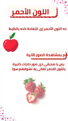 اللون الأحمر ده اللون الأحمر زى التفاحة كده بالظبط قم بمشاهدة الصور الآتية بص يا صديقى دى صور حاجات كتيرة باللون الاحمر تعالى يلا نشوفهم سوا
