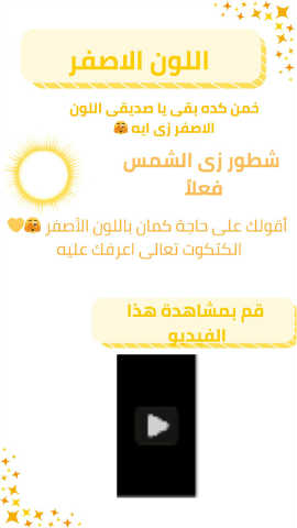 اللون الاصفر خمن كده بقى يا صديقى اللون الاصفر زى ايه شطور زى الشمس فعًال أقولك على حاجة كمان باللون الأصفر الكتكوت تعالى اعرفك عليه قم بمشاهدة هذا الفيديو
