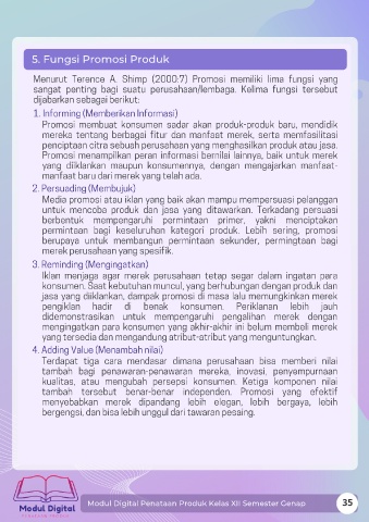 Menurut Terence A. Shimp (2000 7 Promosi memiliki lima fungsi yang