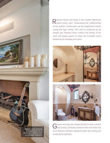 Guests can enjoy this elegant facility for their comfort and privacy. Centrally located on the main level, this room features Venetian plastered walls and ceiling and