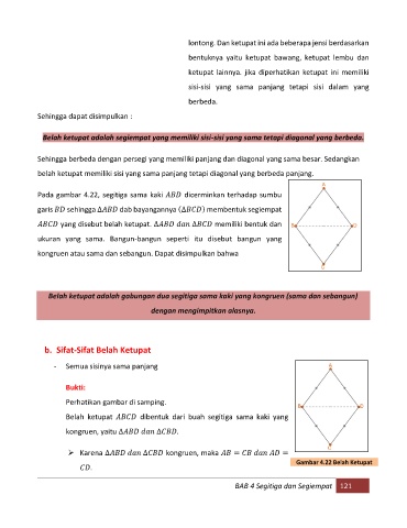 Belah ketupat adalah gabungan dua segitiga sama kaki yang kongruen (sama dan sebangun)