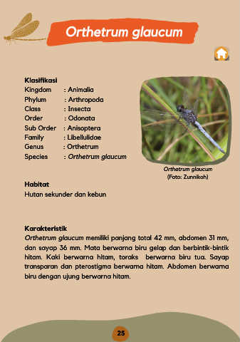 Orthetrum glaucum memiliki panjang total 42 mm, abdomen 31 mm,