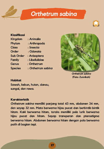 Orthetrum sabina memiliki panjang total 43 mm, abdomen 34 mm,