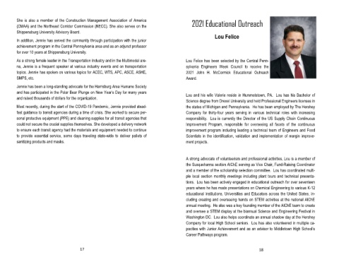 topics. Jennie has spoken on various topics for ACEC, WTS, APC, ASCE, ASHE, 2021 John H. McCormick Educational Outreach