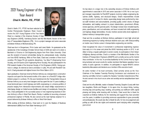 Chad was born in Morgantown, PA to Lester and Janet Martin. He graduated as the Chad recognized the value of involvement in professional engineering organiza-