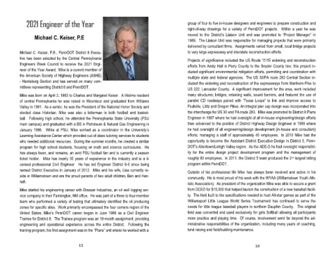 Michael C. Keiser, P.E., PennDOT District 8 Execu- to very large expressway and interstate reconstruction efforts.