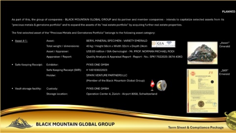 As part of this, the group of companies - BLACK MOUNTAIN GLOBAL GROUP and its partner and member companies - intends to capitalize selected assets from its