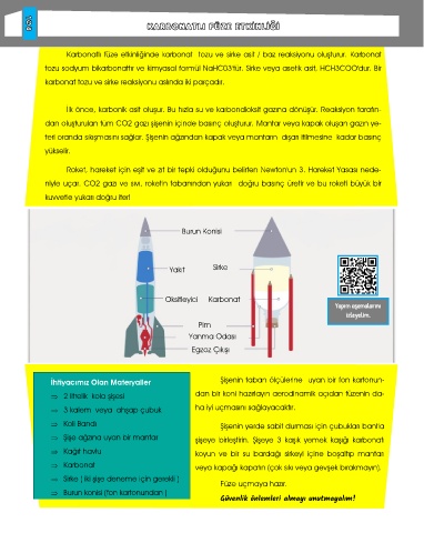 Karbonatlı füze etkinliğinde karbonat tozu ve sirke asit / baz reaksiyonu oluşturur. Karbonat