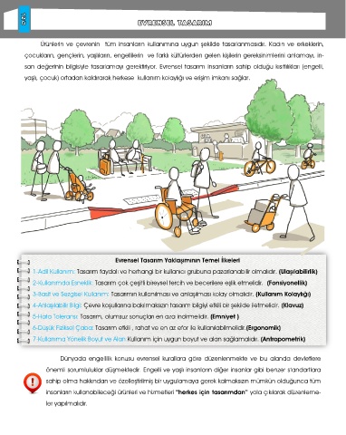 san değerinin bilgisiyle tasarlamayı gerektiriyor. Evrensel tasarım insanların sahip olduğu kısıtlılıkları (engelli,