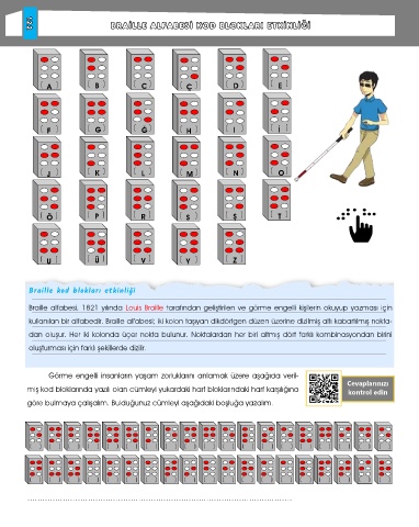 Braille alfabesi, 1821 yılında Louis Braille tarafından geliştirilen ve görme engelli kişilerin okuyup yazması için