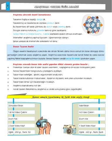 yapılmış fikirleri karşılaştırma imkanı bulurlar. Benzer tasarım analizi en az iki örnek üzerinden yapılır.