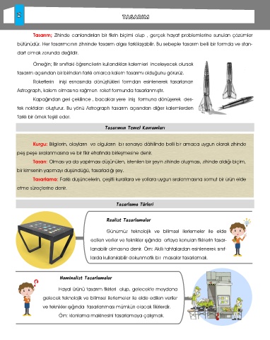 Tasarlama: Farklı düşüncelerin, çeşitli kurallara ve yollara uygun sıralanmasına somut bir ürün elde