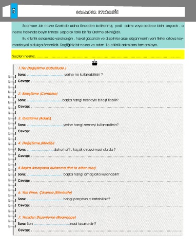 Scamper ,bir nesne üzerinde daha önceden belirlenmiş yedi adımı veya sadece birini seçerek , o
