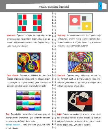 Ton: Gerçekçi bir nesne oluşturmak veya soyut bir Zıtlık: Cisimler arasındaki ortak ya da yakın niteli-