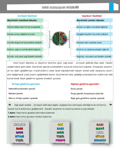 Sağ beyin renkleri , Sol beyin kelimeleri algılar. Aşağıda renk karmaşası etkinliğimiz ile amacımız